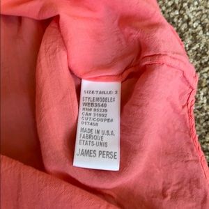 James Perse soft shell shirt in Sherbet (a coral color). Perfect for summer! Super soft, slightly sheer. Buttons down front with pocket. In great condition.