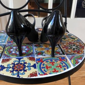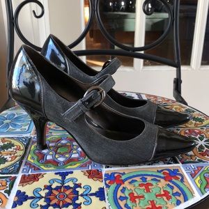Circa Joan & David 7M maryjane black and tweed pointy toe pump, see flaw on left heel in last photo
