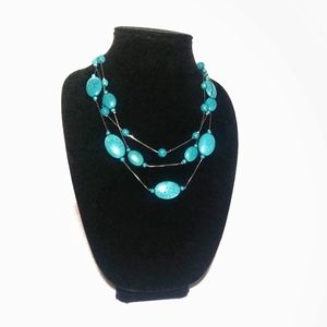 Beautiful beaded Turquoise color stones / beaded necklace. Layered triple strand necklace. Oval and round shaped crackle stones.