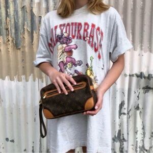 Date code TH1915 Beautifully restored to perfecting- this well loved wallet has a glowing leather shell and room inside for plenty of cards and a button coin pouch for change and large slots for bills. The wallet has minor flaws that play in what I’m asking for this vintage piece, minimal stickiness, two small pen marks in the inside canvas, the outside button closes and is in working condition but is a bit loose ( not meant to be stuffed)