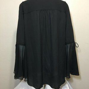 INC INTERNATIONAL CONCEPTS M Shirt Black Faux Wrap Blouse Sheer Anna Sui