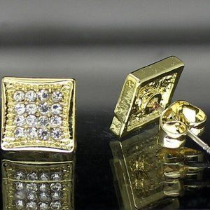 Mens Square Iced 8mm Studs Gold Plated Hip Hop Stainless Steel Earrings