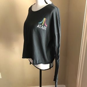 Junk Food Clothing Atari crop long sleeve tee size XXL. Love this old school charm with that faded look. White ring collar and Atari down the sleeve. 100% cotton. Pit to Pit 23”
