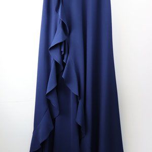 A striking ZAC Zac Posen gown with ruffled edges along the front slit. Crew neckline. Sleeveless. Hidden back zip. Lined.