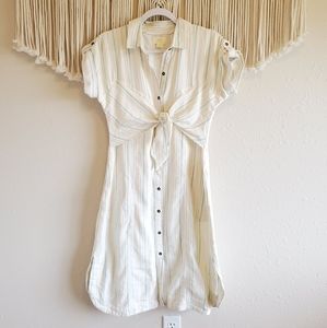 White rainbow striped midi dress, button down, knotted detail on front, collared. Short sleeve. Brand new with tags, never worn! Bundle and save. Sz US 8