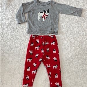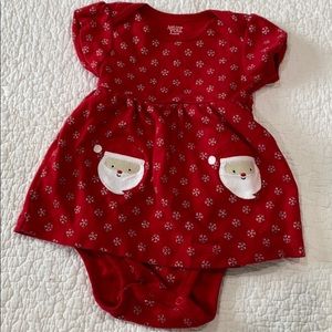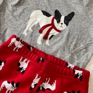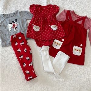 EUC. Includes puppy shirt and fleece pants, Santa Onesie, and 3 piece corduroy Santa outfit (dress, onesie, and tights).