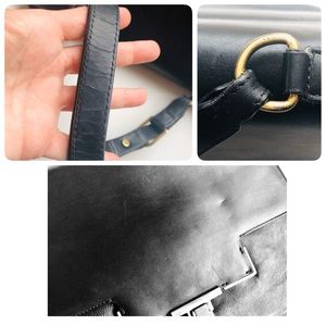 Great for 13inch laptop, A4 files, or just when you want a super polished look.Made of fine Italian leather. Noted:leather does show mild marks (difficult to photograph ) hardware has scratches as well is discolored. Underside of strap shows wear. Bag is 7.5 /10 IMO.Will include duster of some kind.
