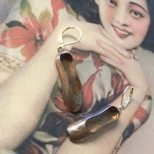 Vintage Brass Tiny Ballerina Slipper Earrings