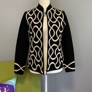 Talbots Black Wool Zipper Jacket Cream Swirl