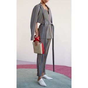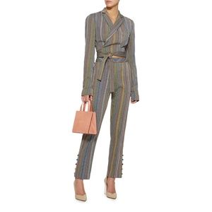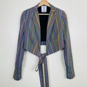 Rosie Assoulin Cropped Wool Silk Rainbow Jacquard Stripe Belted Wrap Blazer Size 6 Small