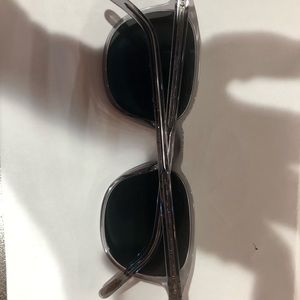 These are sunglass with grayish-blue glass lenses.