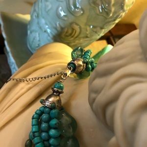 Faux Turquoise Costume Necklace, 25”l, good condition, stunning on neck