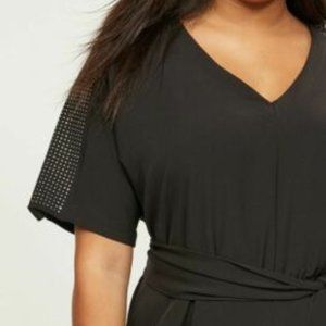 Jumpsuit 16 Black Studded Sleeves Crepe Pants 1 Piece Romper Stretch Plus NWT
