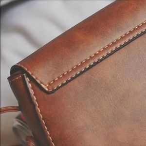 This is the cutest vegan mini bag you’ll ever see! Tanned vegan leather goes with EVERYTHING! Tassels add the perfect detailing. Crossbody strap. Snap foldover flap, plus inside Top Zipper keeps your belongings extra safe! Dark matching hardware.
