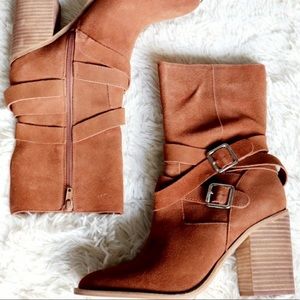 From Chelsea & Violet, the Vicki Suede Booties feature:
