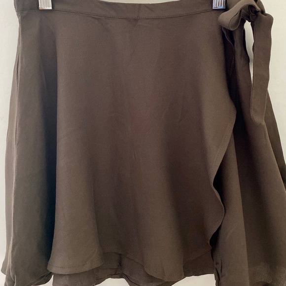 Wrap A-line mini skirt/ skater skirt, olive green colour, zipper closure on the side with ladies knot detail