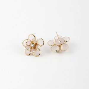 2/$20! Gold/Pale Pink Semi-Opaque Flower Earrings