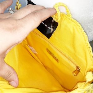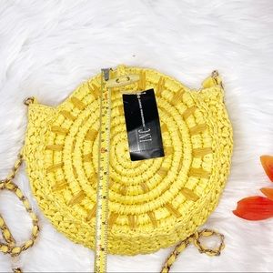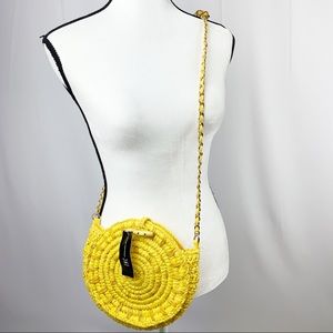 I.N.C. International Concepts yellow daffodil round Straw Circle Crossbody.