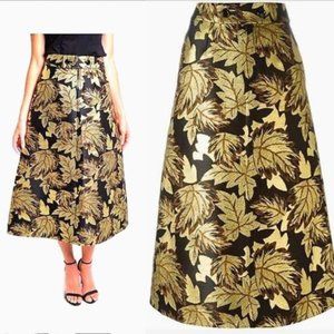 Saint Laurent Gold Brown Black Yves Brocade Silk Wool High-waist Skirt