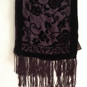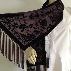 Adrienne vittadini purple velvety floral scarf with fringe. Silk and rayon blend. Fabric is very soft and lightweight In excellent condition. With tag. Great gift idea