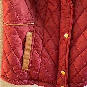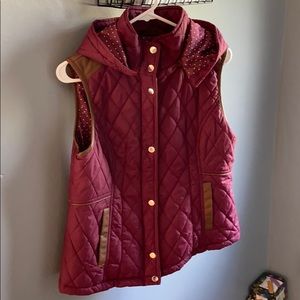 Chic for fall! This vest is lightweight with cute polka dot lining Ann’s faux leather accents. It’s a beautiful maroon color in Large. Fits great and barely worn! From Altard State.
