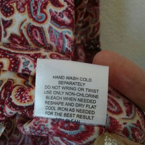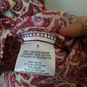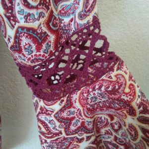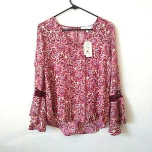 NWT boho paisley crochet burgandy red top with bell sleeves. Tie closure in the front with a round neckline.
