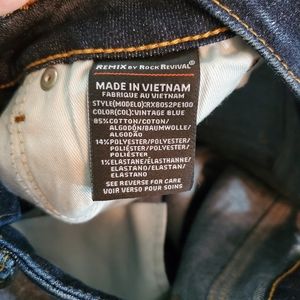 New With Tags Remix by Rock Revival Easy Capri Jeans. Zip Fly with Button Closure, 5 Pocket construction, Fading and Whiskering detail with a Capri leg. See pictures for details and measurements. MSRP $129