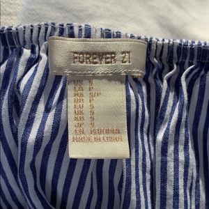 This off the shoulder blouse body suit is perfect for casual summer days out. Fine blue and white strips. Lower body suit material mesh. Size US S
