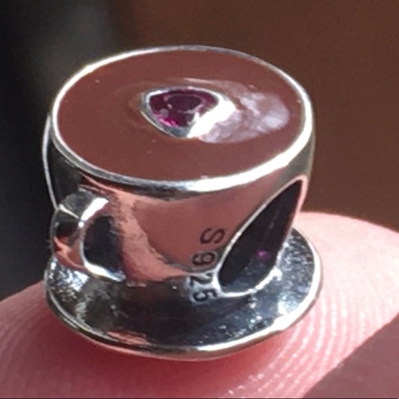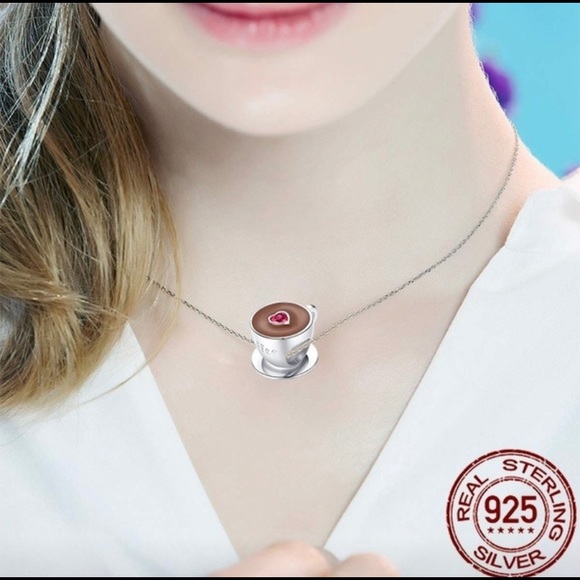 CUTE COFFEE CHARM MADE OF STAMPED 925 STERLING SILVER FEATURES A CUTE HEART SGAPED PINK ZIRCON BROWN ENAMEL PLZ SEE ALL PICS AS THEY’RE A HUGE PART OF THE DESCRIPTION