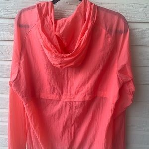 Champion wind breaker size LG , salmon/peach color. Never worn and is in perfect condition. Half zip, hoodie, and has a front pocket.
