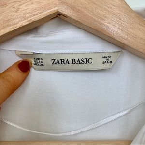 Long sleeve collared dress shirt with hidden button down front and 3 buttons on each sleeve. Great closet staple! 100% cotton.
