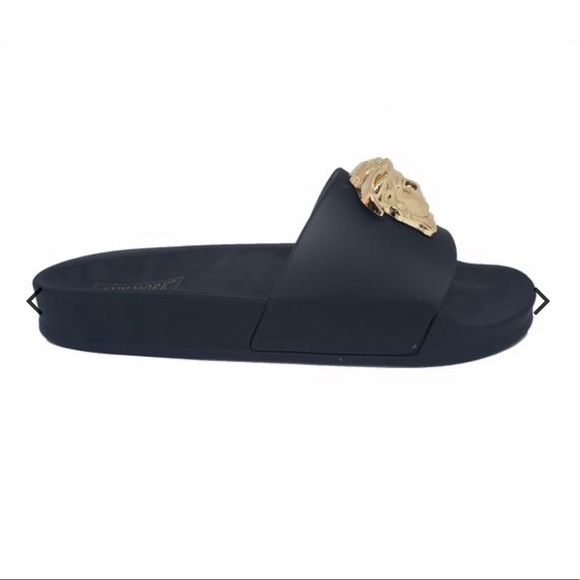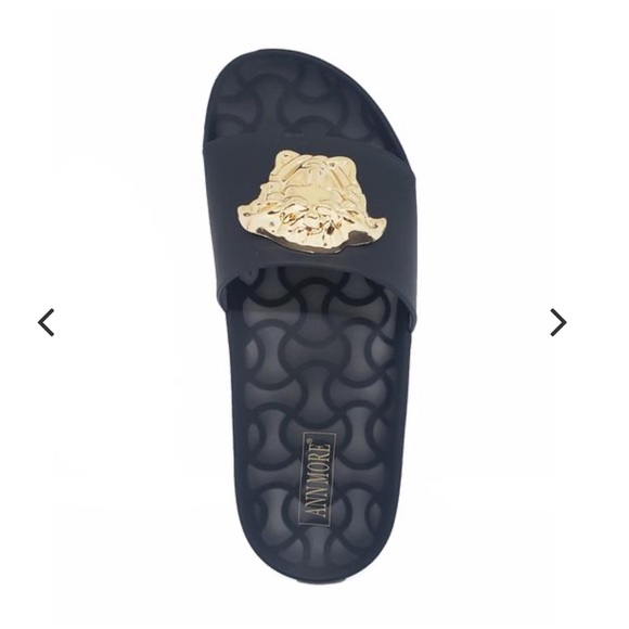 NEW JELLY BLACK SLIDES WITH GOLD DESIGN!