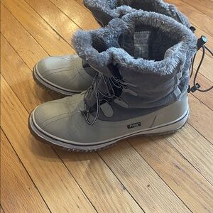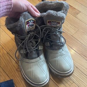 does need new shoelaces for one boot. please look at pictures, Pajar Canada Womens Iceberg Winter Boots Suede Waterproof. When you walk it leaves Maple leaves Prints. cute for fall time. Pajar Womens Iceberg Winter Boots Waterproof. not new have been worn great for pumpkin spice fall time and apple picking. rare edition.