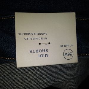 Brand New with tags. Tried on. 4 inch inseam. Fitted hip and leg. Smooths and sculpts.