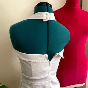 French Connection white halter neck dress. Halter has 2 sets of double buttons to adjust. Lined. 2 front pockets!! Back invisible zipper closure 14" with hook and eye. NWT!