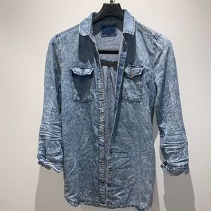 Oversized light denim button down shirt