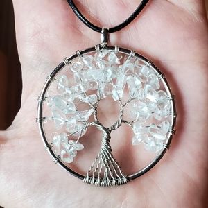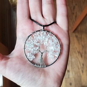 NWOT Crystal Silver Tree of Life Necklace. Pendant approx 52x48mm. Adjustable chain 18-20"