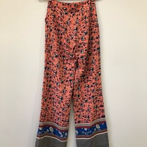 Topshop floral pants, size 2. Layflat waist 12.5in, rise 11in, inseem 31.5in, length 41.5in. Zipper on the side, has 2 pockets