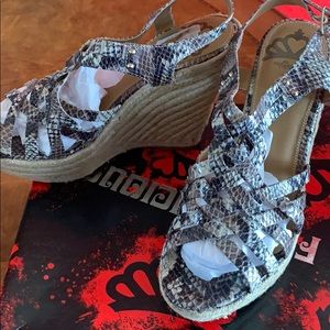 Wedges leather snake sandals, 5 inch heel NW