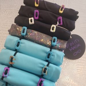 Handmade protective masks that fit around entire head and close the huge gaps left by other masks! Includes two (2) medical-grade filter inserts that surpass N95 BFE (bacterial filtration efficiency)! Includes pair of fit clips. Single mask system. Bulk orders available. Multiples sold under separate post. Specify closed back or ponytail back (center opening to pull hair through)! Choose grey, candy skull, red/white/blue, bright tie dye, pink sequin, royal blue, Tiffany blue, red, or black!