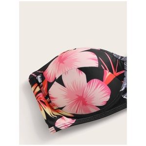 Gorgeous tropical hibiscus floral two piece strapless bandeau bikini with high waisted style bottoms. Molded underwire cups.