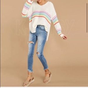 Bohemian Pastel Rainbow Stripe Sweater Top