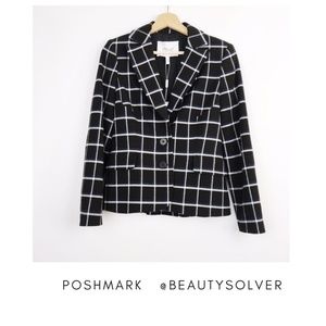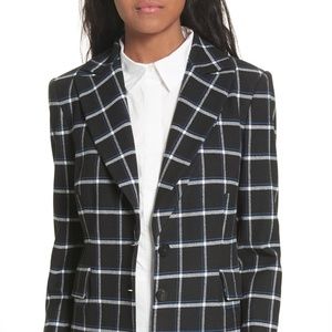 Derek Lam 10 Crosby. Modern Black Plaid. Excellent condition. Elbow-patch. Two-button-blaze. Colors - black, white, blue.