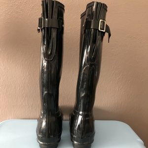 US size 7 Hunter rain boots with buckle strap on the back. Minor scuff marks on the sides. Excellent used condition, only worn a few times.
