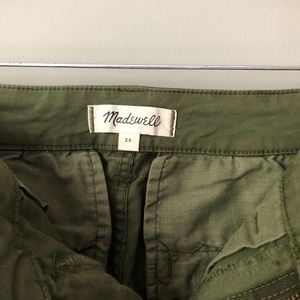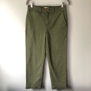 Great like-new condition straight leg, high waisted crop pants from Madewell in olive green color. They are tagged as a 26 but measure and fit a size 28. 26" inseam