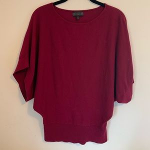 Draped short sleeve shirt by Forenza. Dark red/burgundy color. Ribbed and fitted at the bottom, looks amazing on! Pair with black skinny jeans and heels for a glamorous yet comfortable look. Size S. Excellent condition, no flaws!