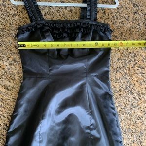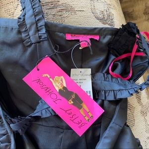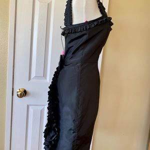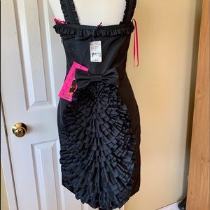 Adorable Betsey Johnson dress! Bought this for my daughter and she never wore it! Black, sleek, double lined, side zipper and clasp, back pleated ruffles. New with tags. $428 original cost, got on sale for around $160