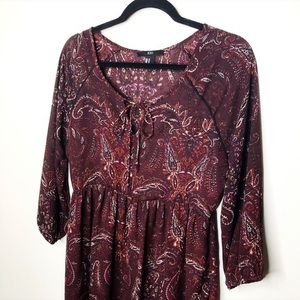 This stunning burgundy Midi dress from Forever21 is in great condition, and features a gorgeous paisley print, long sleeves with elastic, a keyhole cutout and bow closure in the front, and a zipper closure on the side for easy on and off (both pictured.) Feel free to ask any questions or make an offer! All reasonable offers accepted. ✨