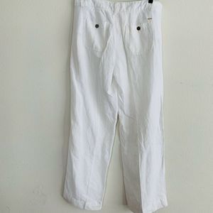 Tommy Hilfiger Women White Linen Wide Leg Pants