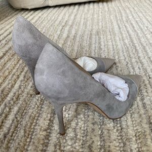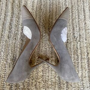 These comfortable and sophisticated stilettos are beautiful with the mix of suede, kid leather and pointed toe design. 90mm. These have just been worn twice! Includes original Manolo box and dust bag.